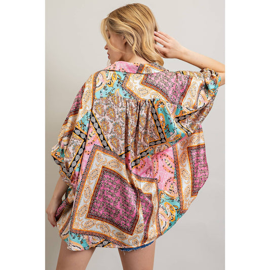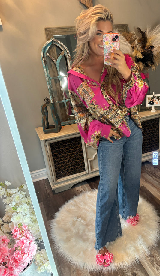 Sold outSatin Button Down [Pink & Tan]