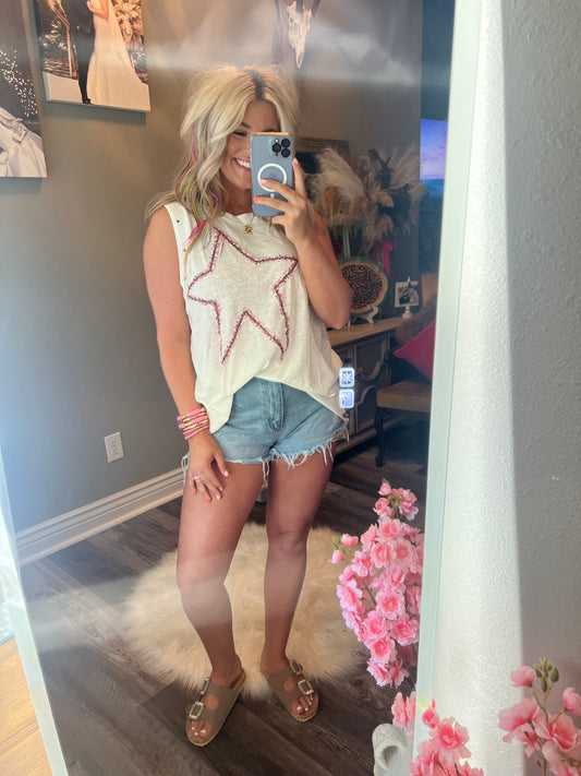 Floral Star Patch Tank Top [Ivory]