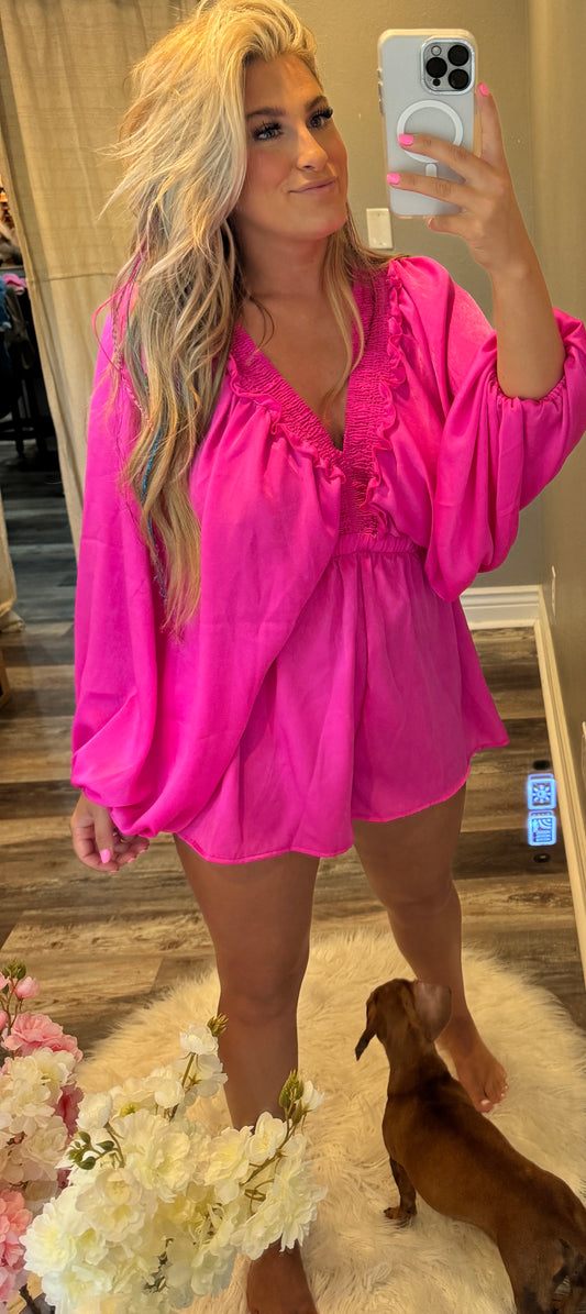 Ruffle Sleeve Romper [Fuchsia w/Orange]